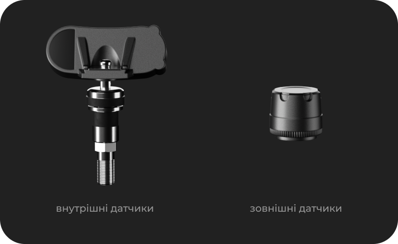 Опційно можливе встановлення двох типів датчиків тиску в шинах:
